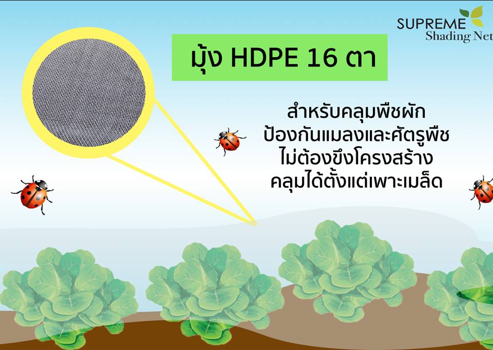 มุ้งตาข่าย Mono Net 16 ตา สำหรับการเกษตร สำหรับคลุมพืชผักในพื้นที่ขนาดใหญ่ ช่วยป้องกันแมลงและนก